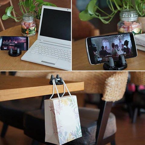 The bottom 3M glue base design, made with a soft pad and strudy base. Well built and well designed, the phone holder can be attached firmly. And strongly it hold your phone in order to prevent them from scratching and dropping. SEAMETAL+the Best Carphone Holder Ever