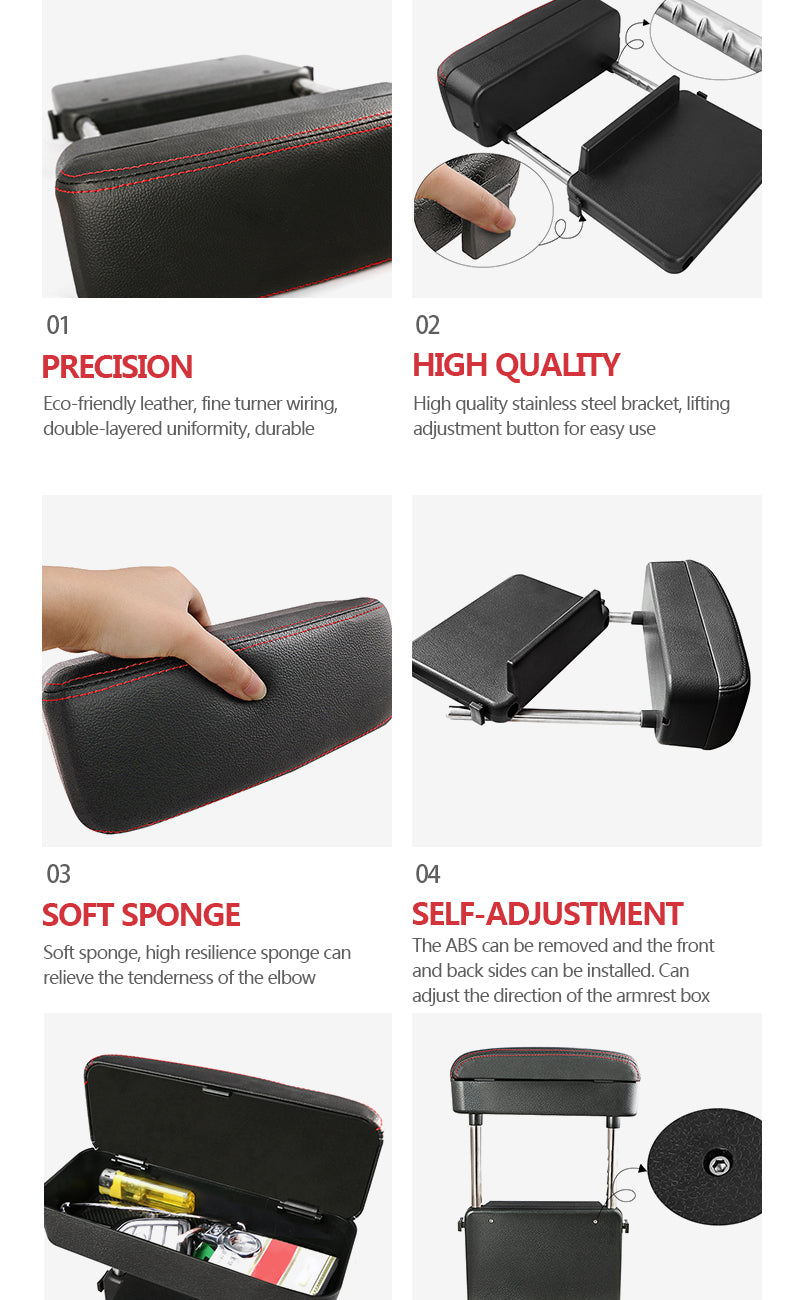 4 Colors Universal Car Armrest Storage Box Case Seat Elbow Support Adjustable Height Box