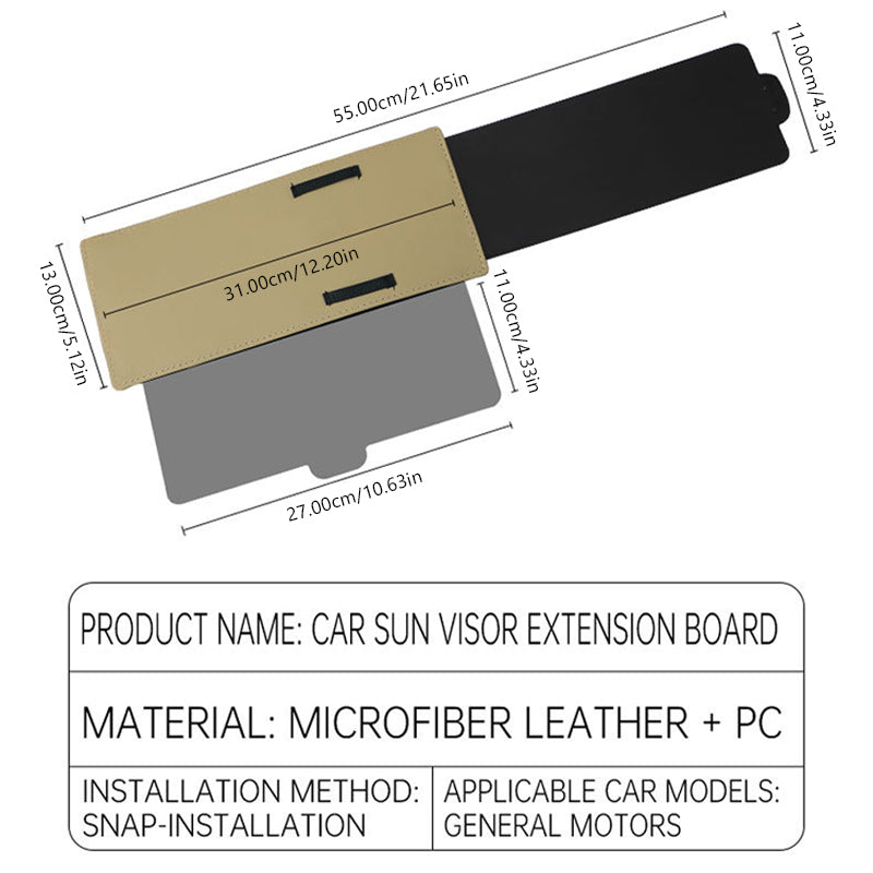2.Durable Leather and PC: The car sun visor extender is made of durable plastic and thick microfiber leather with quality shockproof elastic straps. The plastic is the same as the original car plastic and adjustable both in length and width.