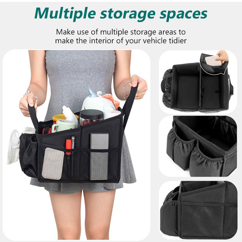 Crafted from , waterproof Oxford fabric, this Organizers features multiple compartments for easy sorting of items like phones, key, and drinks, ensuring durability and ease of cleaning in any driving environment.