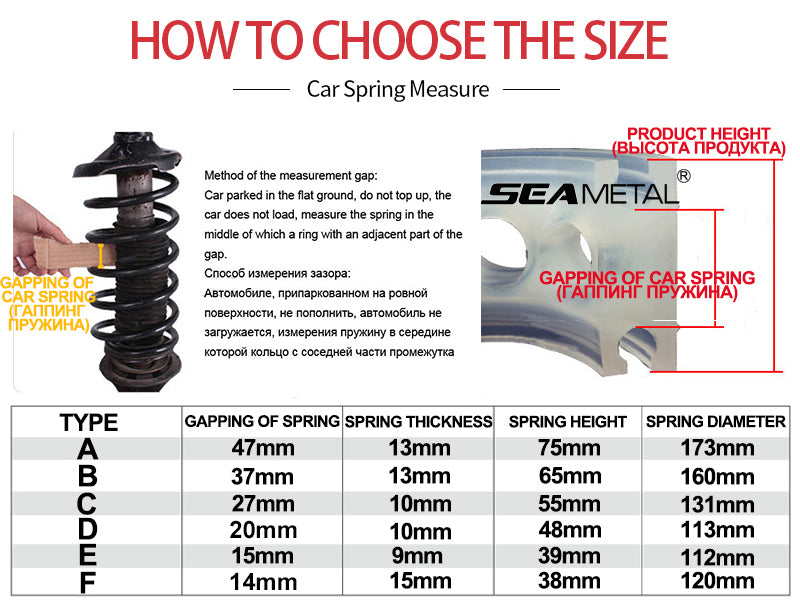 - Size for all types of car including lowered spring and adjustable.