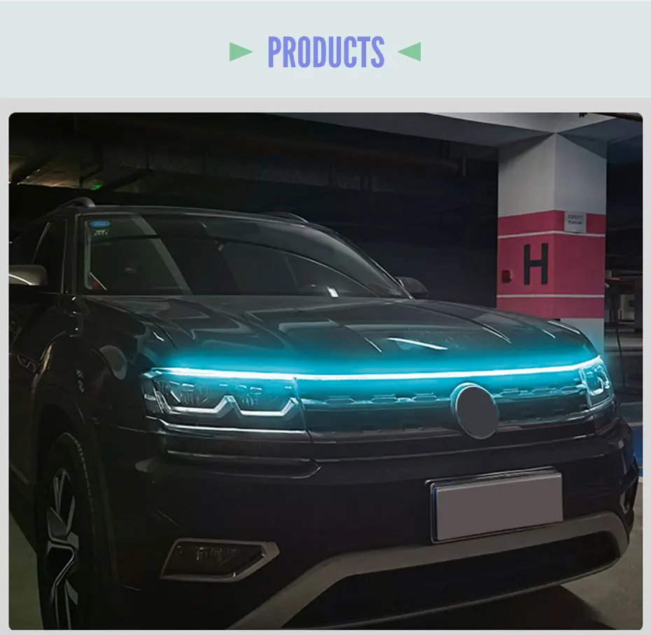 SEAMETAL Car 12V LED Start-scan Hood light Strip Flexible Daytime Running Light Atmosphere Light Strip