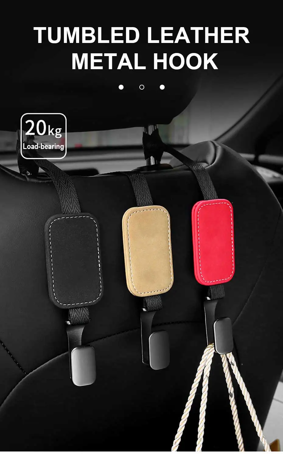 SEAMETAL Luxury Car Storage Hooks Headrest Hooks Pu Leather Car Seat Back Hanger Organizer